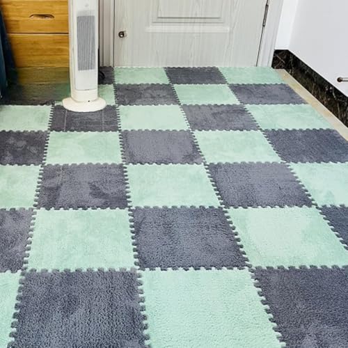 Interlocking Fluff Carpet, 30x30x1cm Square Foam Floor Tiles Mat, Soft Large Area Rug Crawling Mat, Warm Plush Floor Mat (Green and Grey 20Pcs)