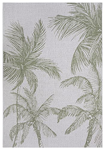 Northrugs Jaora Flat Weave Indoor and Outdoor Rug (80 x 150 cm, Floral Palm Tree Design, 100% Polypropylene, UV- and Moisture Resistant, for Balcony, Patio, Garden and Living Room), Grey Green