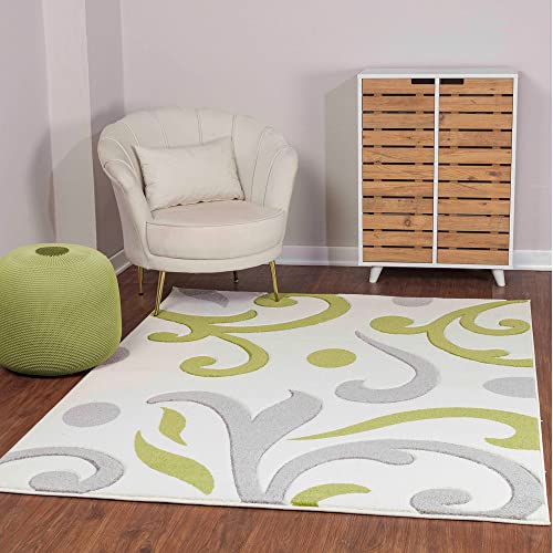 Livabliss Marseille Abstract Rug - Area Rugs Living Room 120x170 cm, Dining Room, Lounge, Kitchen, Bedroom - Modern Marble Large Rug, Soft Luxurious Easy Care Medium Pile, White, Green and Grey