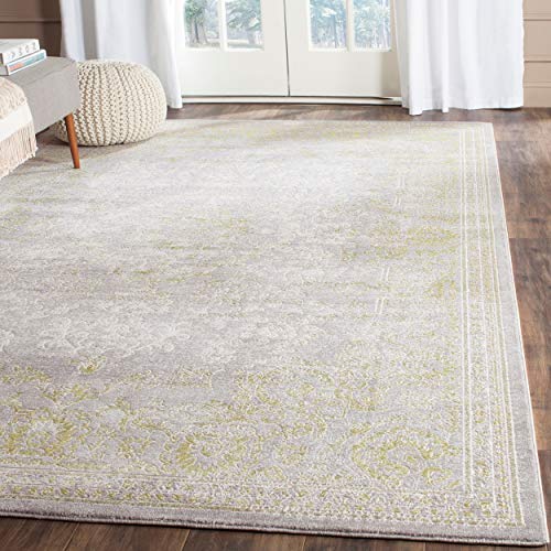 SAFAVIEH Glam Rug for Living Room, Dining Room, Bedroom - Passion Collection, Short Pile, in Grey and Green, 201 X 279 cm