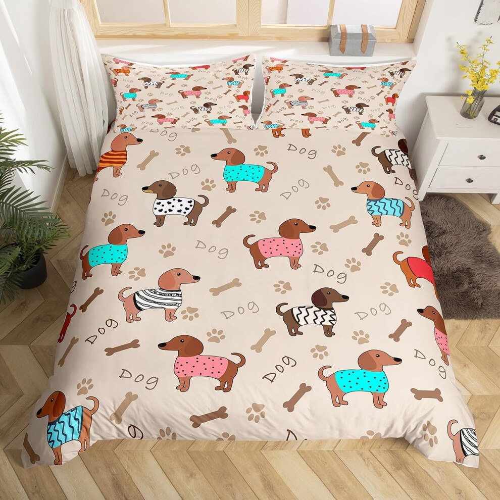 (White, Single) Dogs Duvet Cover Reversible Check Bedding Set Green & Grey