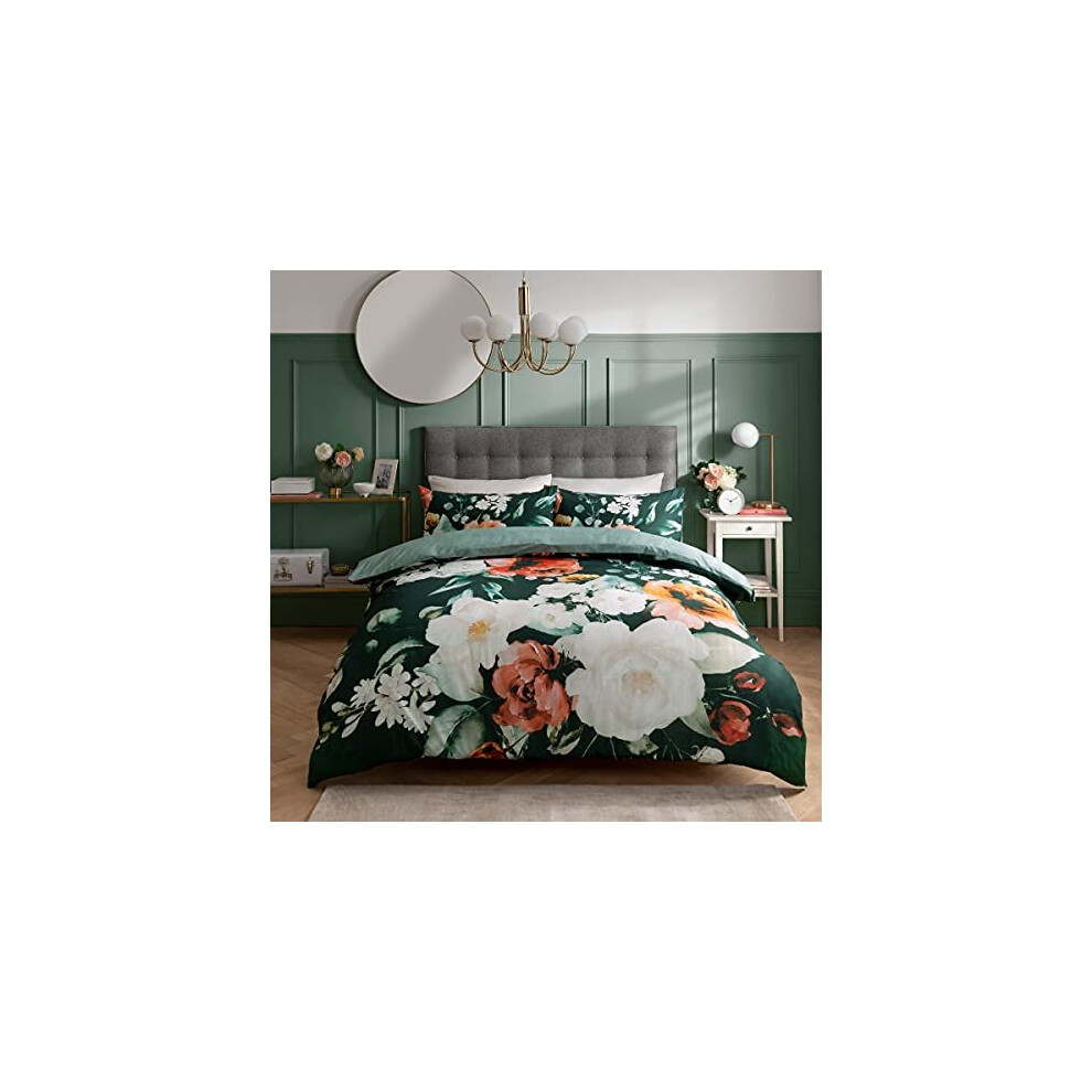TTCM Super King Duvet Set, Floral Super King Duvet Cover Set Soft Microfibre Polyester Bedding Set, 3 Pieces - 1 Duvet Cover 260x220cm in with Zipper Closure and 2 Pillowcases(Green White)