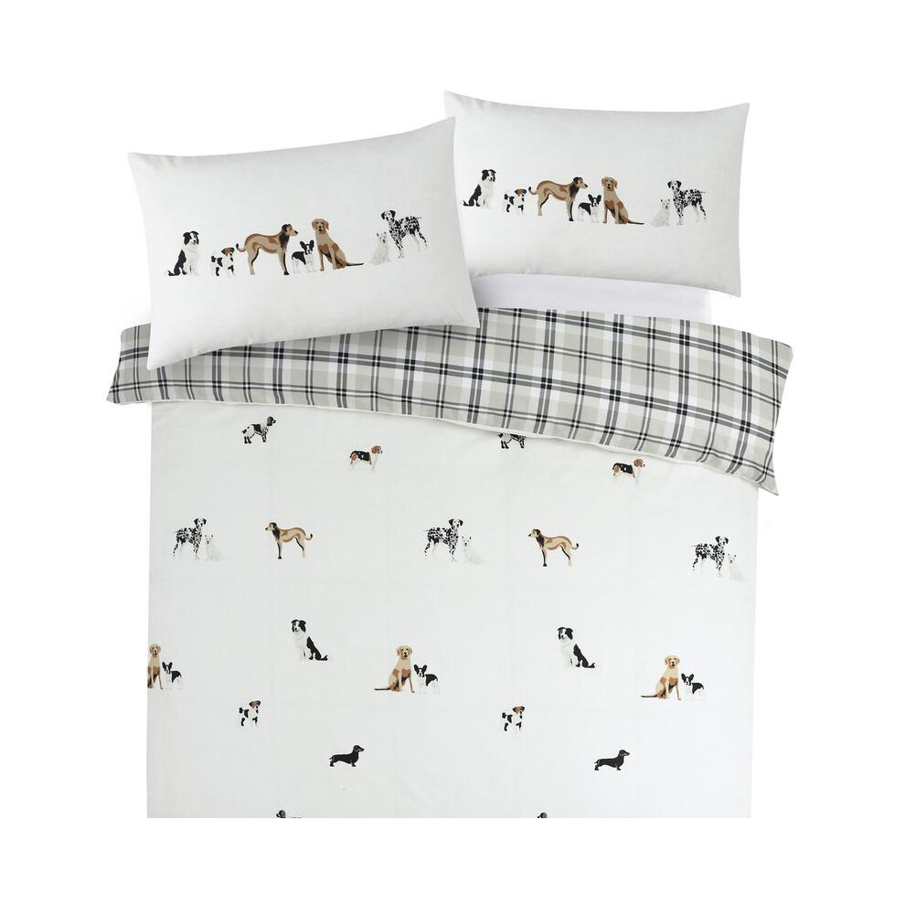 (White, Double) Dogs Duvet Cover Reversible Check Bedding Set Green & Grey
