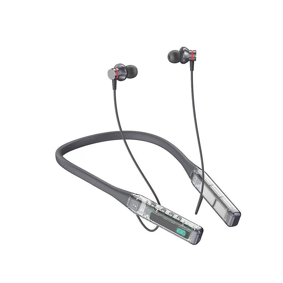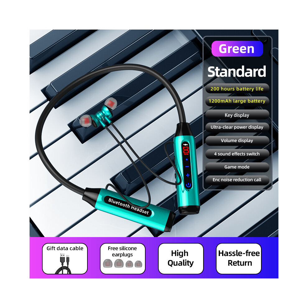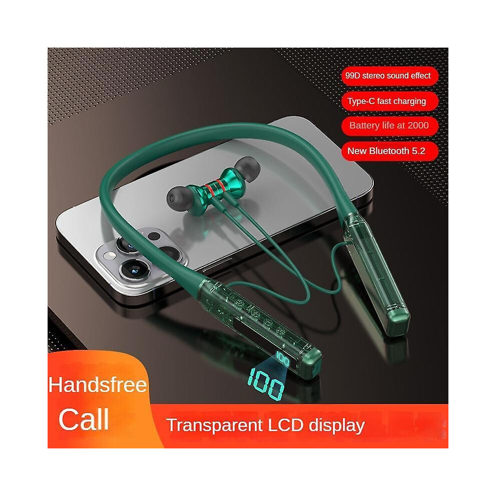 (green) Magnetic Neck Hanging Wireless Bluetooth Headset with LED Digital Display HiFi Stereo In-Ear Headphones Waterproof Sports Earphones for Apple