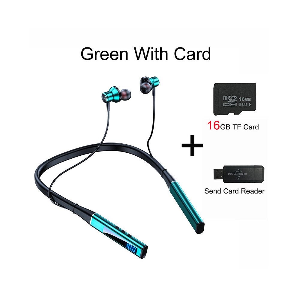 (a-Green With TF) 100 Hour Playback Wireless Headphones Bluetooth 5.2 Earphones For iPad Tablet Neckband Headset TF Card For Apple Samsung Huawei