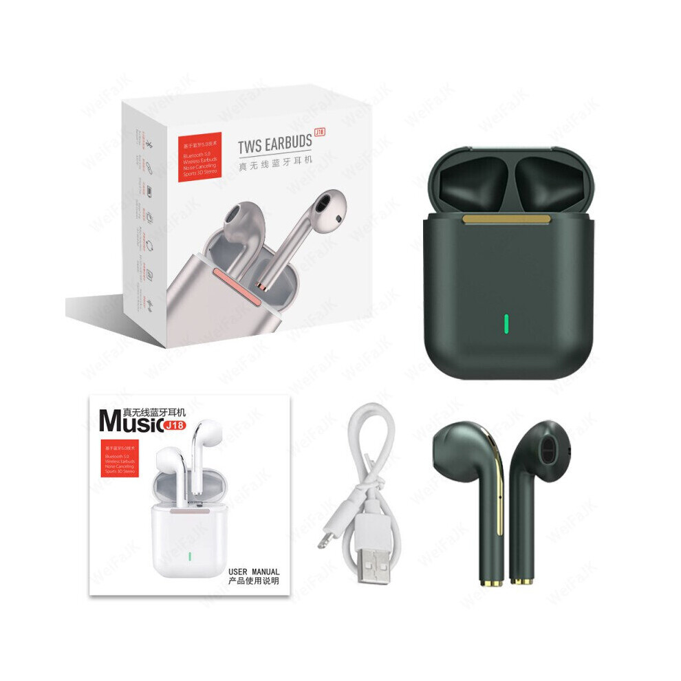 (a-Dark Green) Original Air J18 TWS Pro Wireless Headphones Bluetooth Earphone Earpod Earbuds Gaming Headset for Xiaomi IPhone Apple Earphones