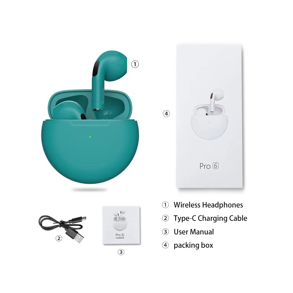 (a-green Headphones) Pro 6 TWS Wireless Headphones with Mic Fone Bluetooth Earphones Sport Earbuds Pro6 J6 Headset for Apple iPhone Xiaomi Huawei LG