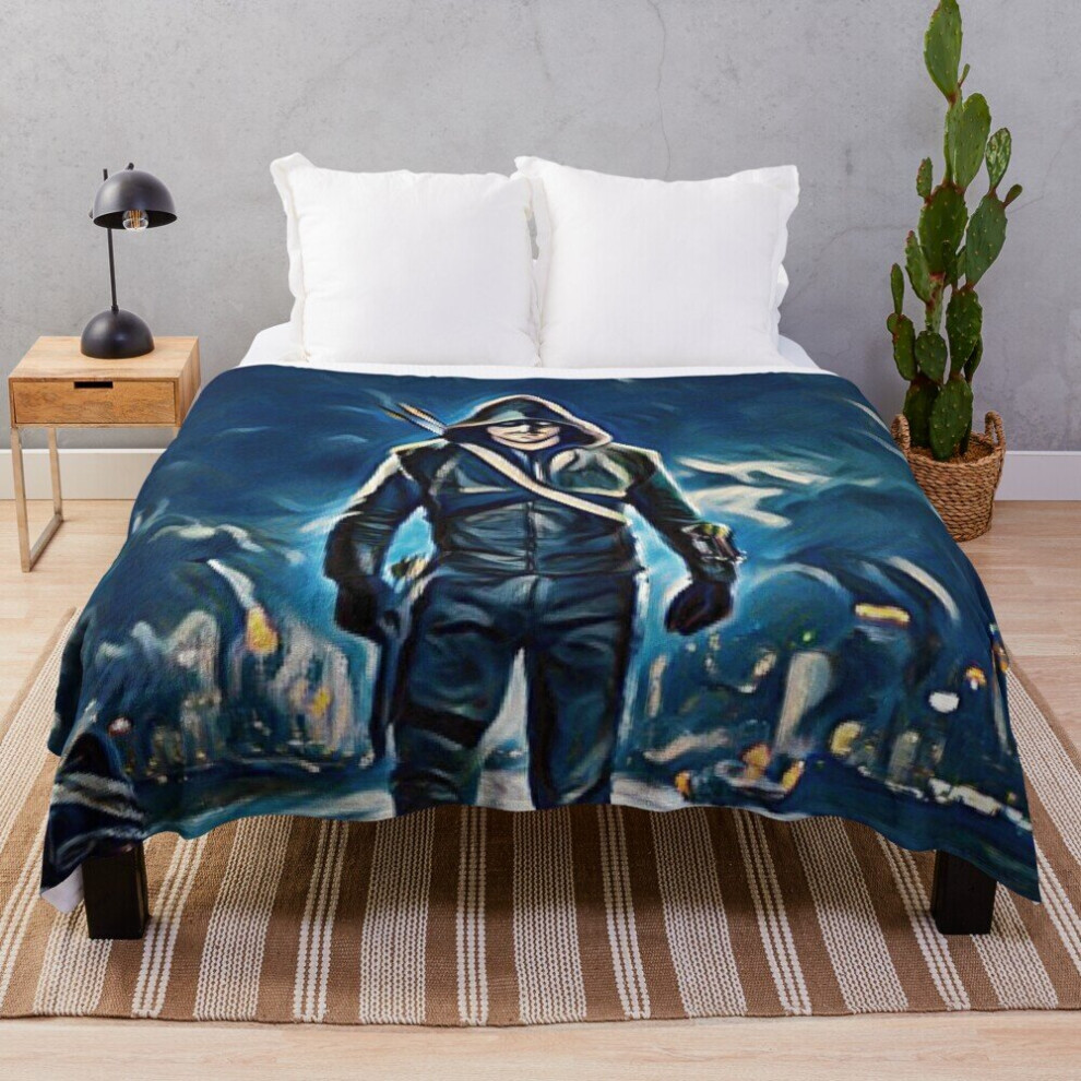 Fleece Throw Blanket Oliver Queen The Green Arrow Poster for Sofa Couch Kids 60 x 50 Inches
