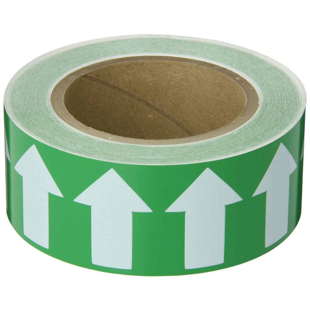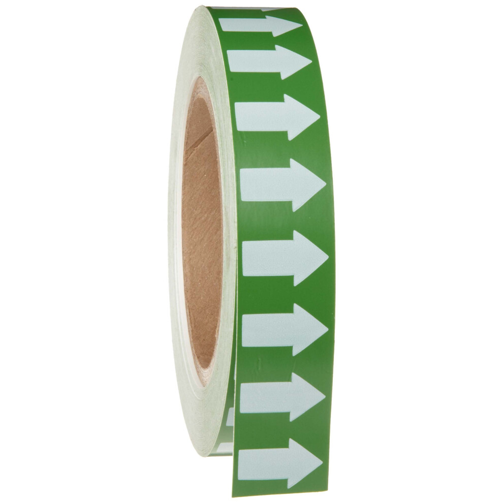 Brady 91425 1"""" Width 90' Length B-946 High Performance Vinyl White On Green Color Arrow Tape Legend (Arrow Pictogram)