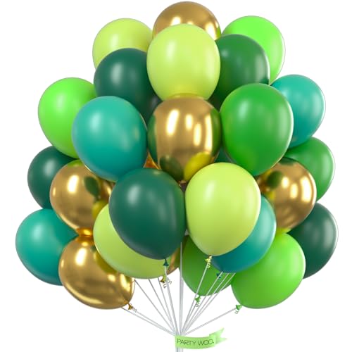 PartyWoo Assorted Green Balloons - 60 pcs, 12 inch, Lime & Gold for Green Birthday Decorations