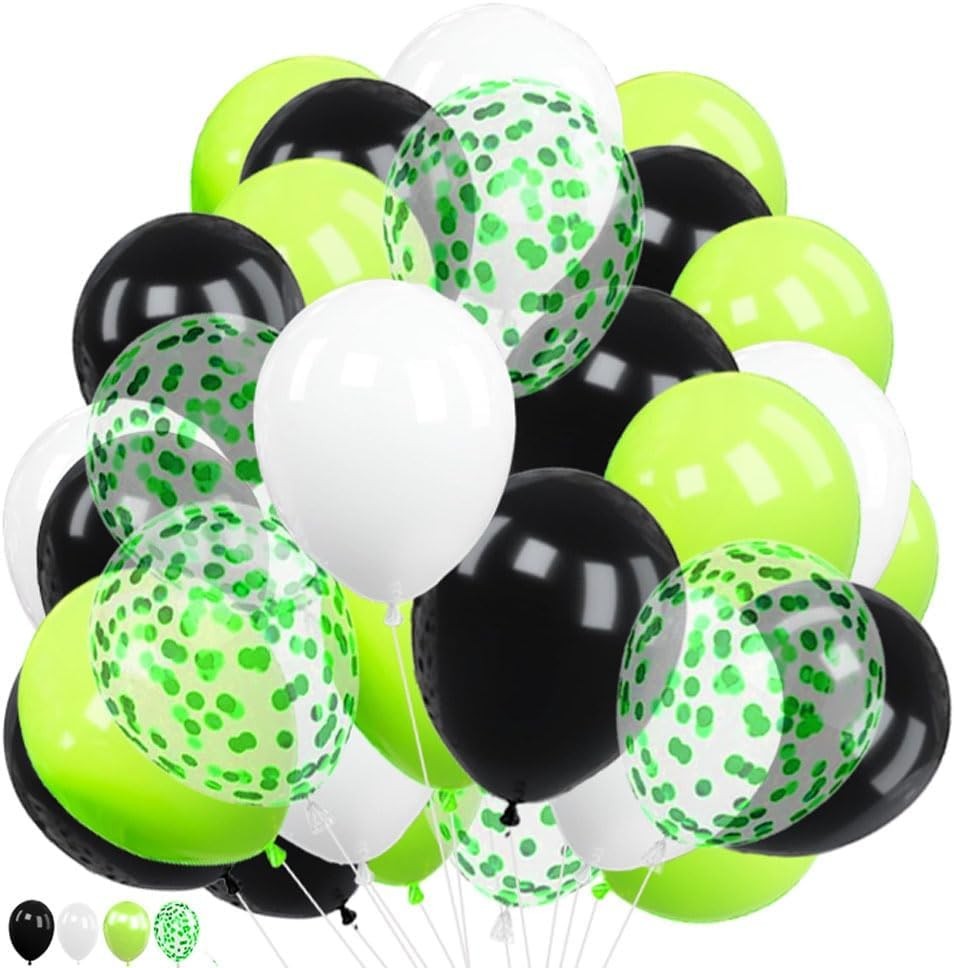 Green Black Balloons 30 pcs 10 Inch Black White Green Confetti Balloons Pack fo