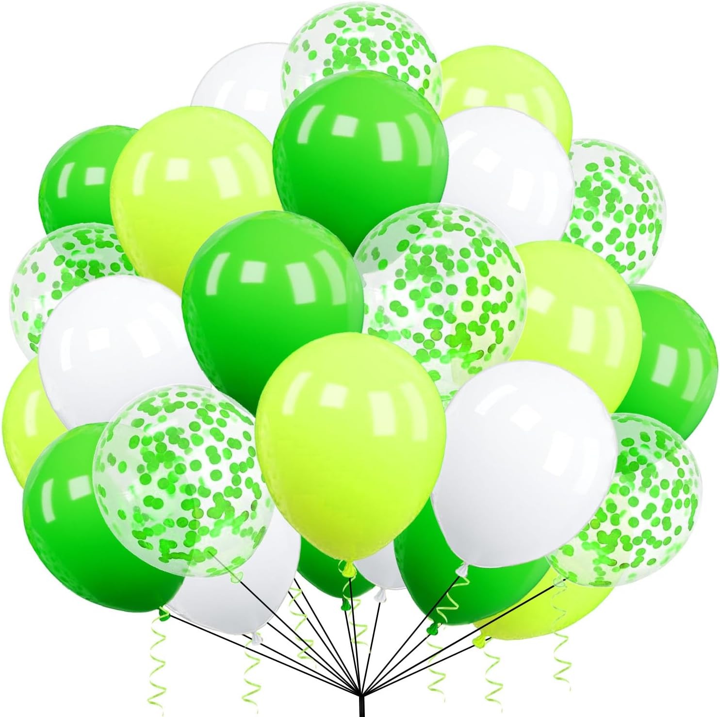 Party Balloons 50pcs 10 Inch Dark Green Lime Green Balloons White Latex Confetti Balloon for Themed Birthday Jungle Safari Party St. Patrick's Day Decoration