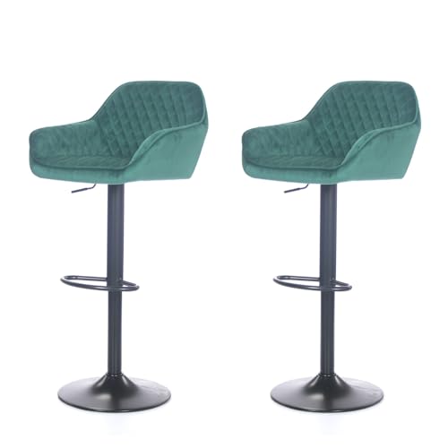 Tonture Set of 2 Dark Green Velvet Bar Stools Height Adjustable with Footrest 360° Rotatable Modern Design for Kitchen Dining Room Counter Chrome Plated Steel Base High Seat Comfort