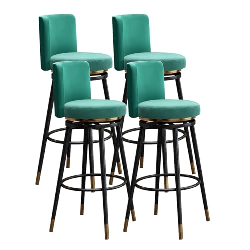 MARIYCH Swivel Green Bar Stools Set of 1/2/3/4 with Velvet Upholstered Seat, Backrest and Footrest,Modern Kitchen Counter Chairs for Bar, Dining Room(4 PCS 75cm,Black Leg)