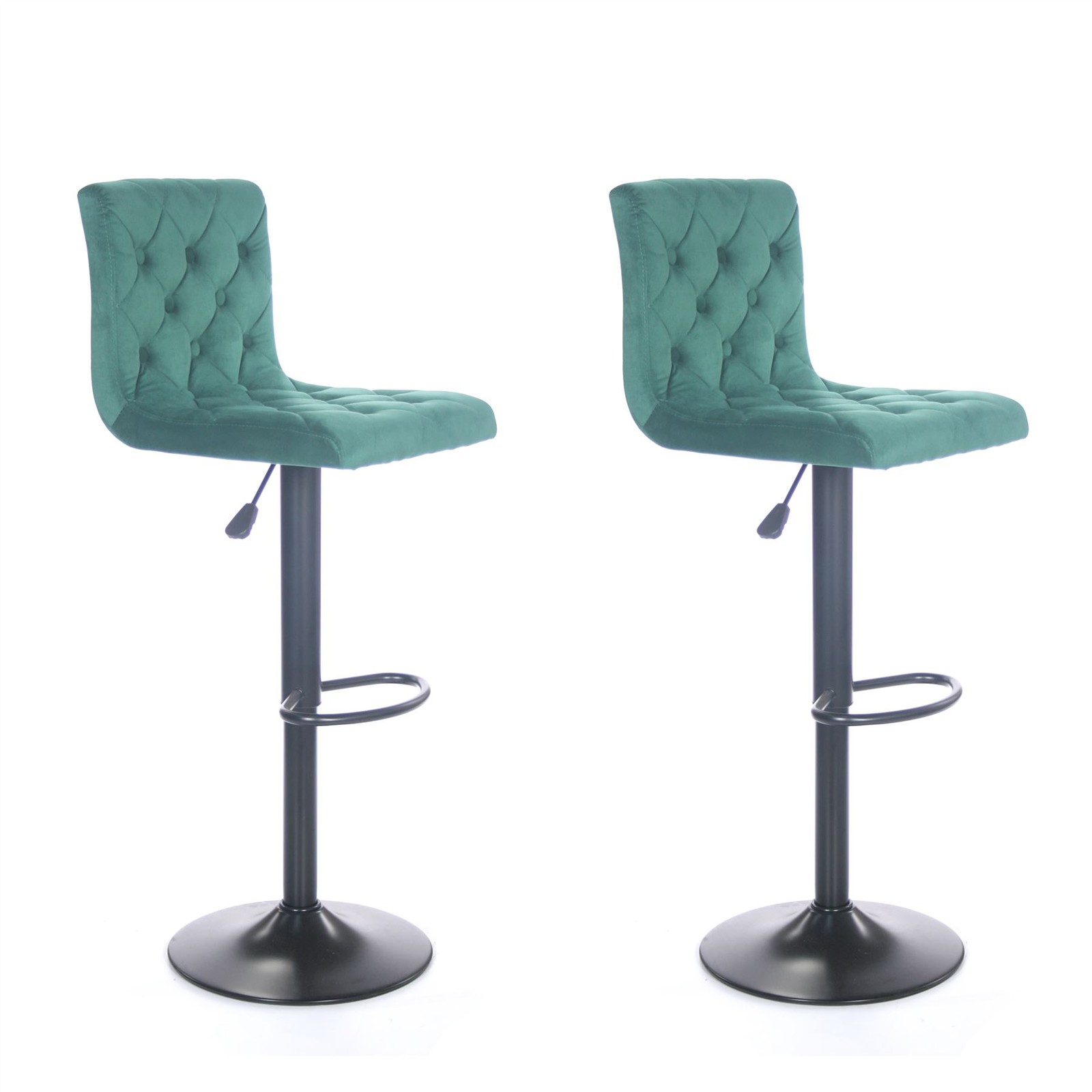 2 x Velvet Green Bar Stools Kitchen Stool Upholstered Round Base Adjustable