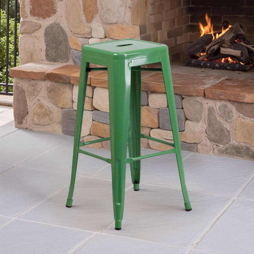 FWStyle Set Of 4 30" Green Metal Bar Stools Galvanised Steel Ready Assembled