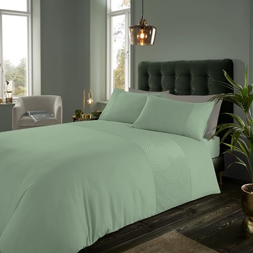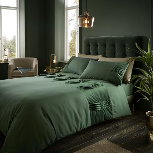 GC GAVENO CAVAILIA Luxury Pintuck Duvet Cover Single, Polycotton Pinch Pleat Bedding Sets, Washable Quilt Covers With Pillow Case, Green
