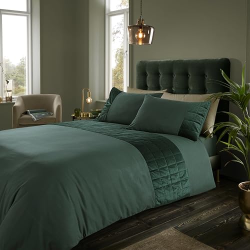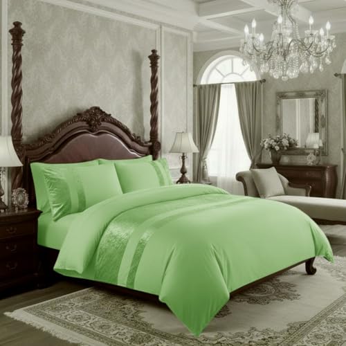 Casabella Luxury Crushed Velvet Panel Band Duvet Cover Sets with Pillow Case Double Duvet Cover Bedding Set – Sage Green Crush Velvet Double Duvet Cover Sets