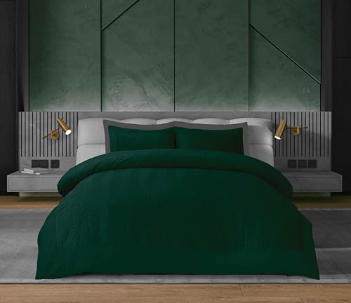 GC GAVENO CAVAILIA Velvet Quilt Cover King Size Bed Set - Fancy Duvet Cover (230x220 cm) - Breathable Comfy Bedding Sets King - Polyester Bed Cover & Pillowcases - Dark Green