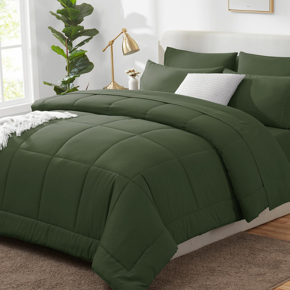 CozyLux Queen Comforter Set with Sheets 7 Pieces Bed in a Bag Olive Green All Season Bedding Sets with Comforter Pillow Shams Flat Sheet Fitted She