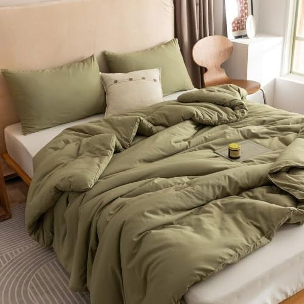 MOONLIGHT20015 Double Bedding Set 4 Piece Duvet Cover Fitted Sheet with Pillow cases Soft Brushed Microfiber Duvet Cover sets Olive Green
