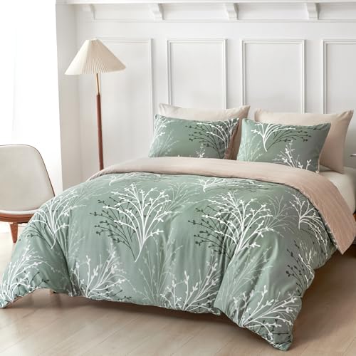 OHS King Size Duvet Cover Set Willow Branch, Bedding Quilt Cover Bed Set Ultra Soft Luxury King Size Duvet Cover Sets Easy Care Covers with Pillowcases, Sage Green