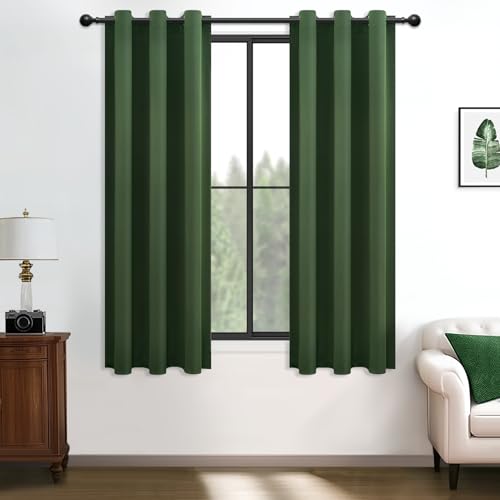 PONY DANCE Short Curtains for Kitchen - Sage Green Thermal Insulated Blackout Curtains Light Blocked Privacy Protection Window Treatments Panels for Small Window, W46 X L45, 2 Panels