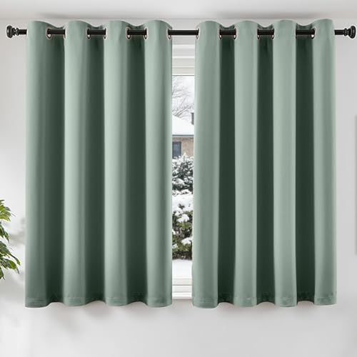 PONY DANCE Sage Green Thermal Blackout Curtains Short Window Curtains 54 Inch D