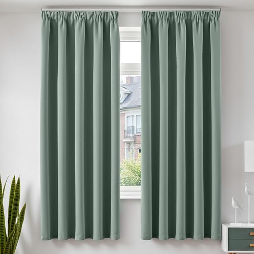Fusion Sage Green Blackout Curtains W46 x L72 (117 x 183cm) – Pencil Pleat Thermal Drapes – 2 Panels – Bedroom & Living Room Curtains – Light Green Energy Saving & Noise Reducing Window Coverings
