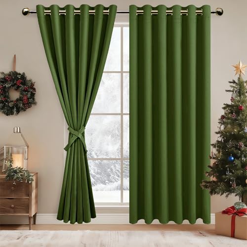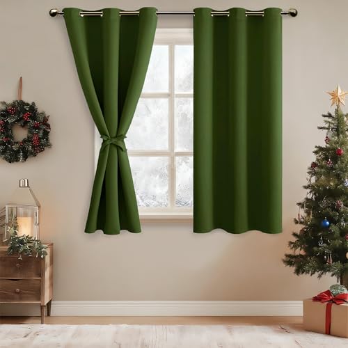 DWCN Green Blackout Curtains with Tiebacks for Bedroom Thermal Insulated Solid Eyelet Curtains for Living Room,2 Panels,46" Wide x 54" Drop