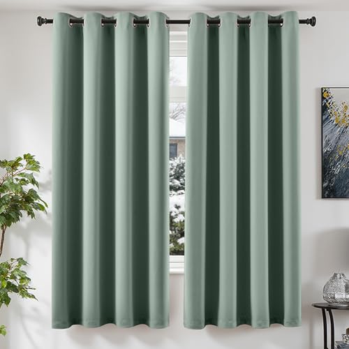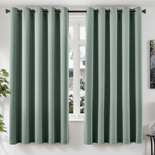 PONY DANCE Sage Green Blackout Thermal Insulated Curtains for Bedroom, 46 x 54 Inch Short Eyelet Curtains & Drapes, Soft Black Out 2 Panels for Window Living Room/Kitchen
