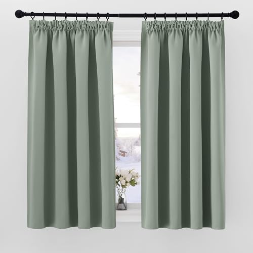 MRTREES Sage Green Blackout Curtains 54 Inch Drop, Thermal Pencil Pleat Curtain