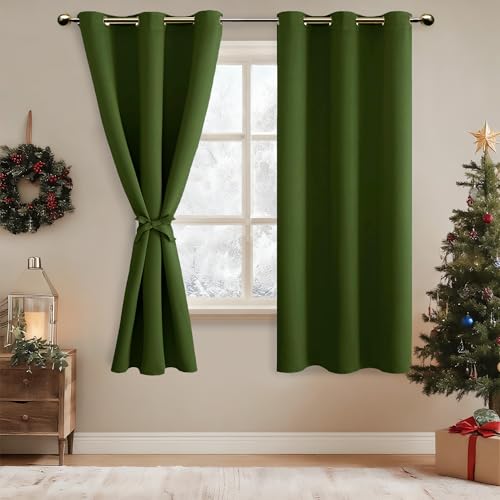 DWCN Green Blackout Curtains with Tiebacks for Bedroom Thermal Insulated Solid Eyelet Curtains for Living Room,2 Panels,46" Wide x 72" Drop