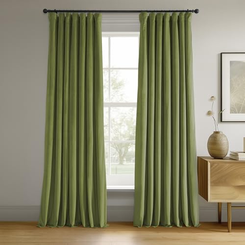 Lazzzy Green Velvet Blackout Curtain Thermal Insulated 108 Inch Extra Long Bedroom Living Room Drapes Soft Luxury Velvet Curtain Rod Pocket 1 Panel Sage Green