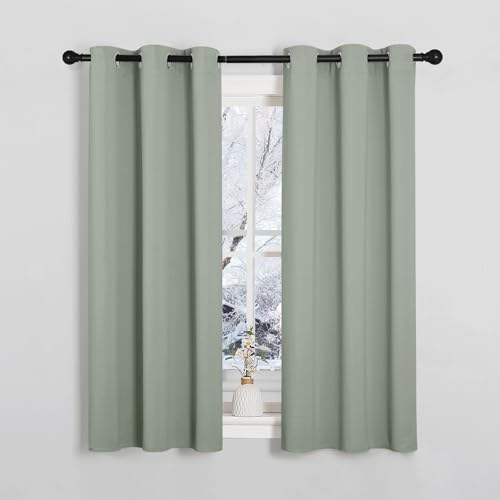 NICETOWN Nursery EsseKGUSial Thermal Insulated Solid Grommet Top Blackout Curtains/Drapes for Son's Room (Sage Green, 1 Pair, 42 x 63 inches)