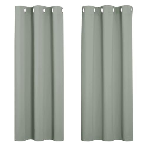 PONY DANCE Small Blackout Curtains 37x40 Inch - Sage Green Thermal Insulated, Light Blocking, Privacy Protection Curtains & Drapes for Bedroom & Kitchen, 2 Panels