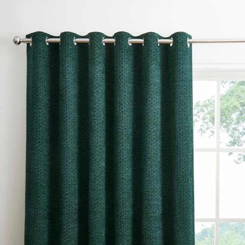 Fusion Forest Green Eyelet Curtains W46 x L72 (117x183cm) – 2 Panels – Thermal Blackout Drapes for Bedroom & Living Room Window Treatment – Strata Collection – Noise Reducing