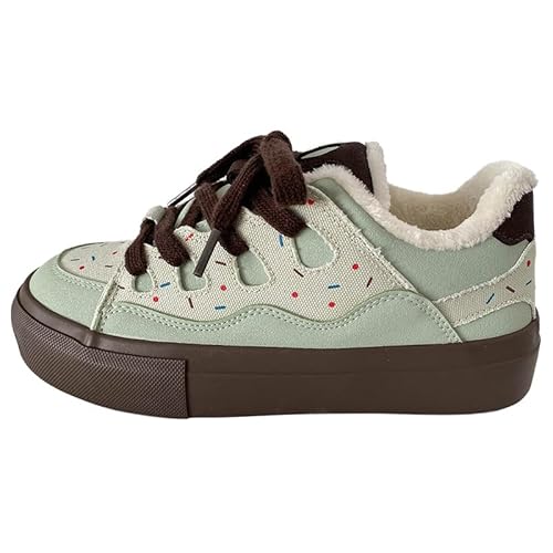 Women's Platform Sneakers Round Toe Cute Y2K Walking Comfortable Casual Shoes for Women & Girls Campus Student Footwear(4,Mint Green Plush)