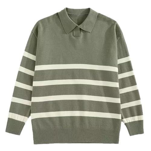 Men's Jumpers, Shawl Collar Sweater Coat Long Sleeve Knit Cardigan Casual Loose Fit Style Striped Pullover Top For Autumn Winter (Green, XXL)