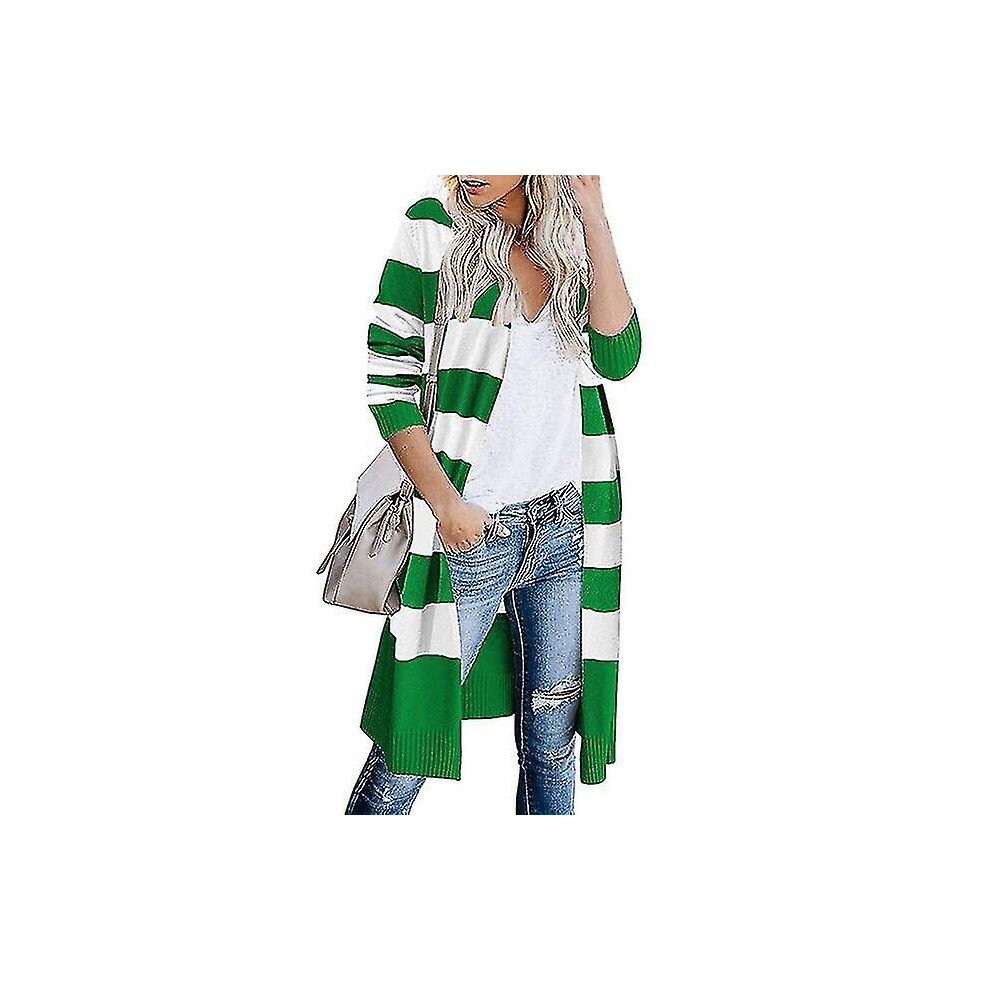(As show, Green 3XL) Women's Cardigan Sweater Striped Stylish Long Sleeve Sweater Cardigans V Neck Fall Winter Yellow Gray Green