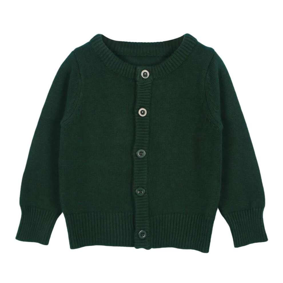 Girls' Solid Dark Green Knit Cardigan Sweater, Round Neck, Long Sleeve, Button Front â Compatible with Outdoor Activities, 5-6 Years