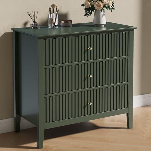 SUNVIVI Fluted Chest of Drawers Bedroom: 3 Drawers Modern Nightstand, Wide Chest of Drawers with Spacious Storage, Eco-friendly Wooden for Living Room/Entryway/Hallway (Green, 3 Drawers Dresser)
