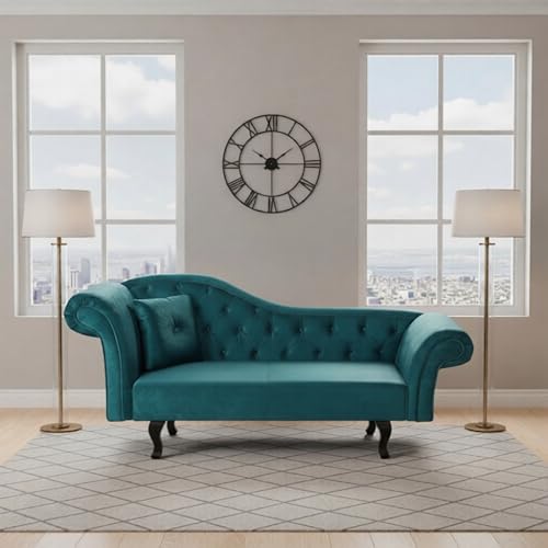 ark future Luxurious Velvet Tufted Chesterfield Chaise Lounge Sofa – Plush Button-Tufted, Retro Wooden Legs, Bedroom & Living Room Accent (Emrald Green, Right Hand Chair)