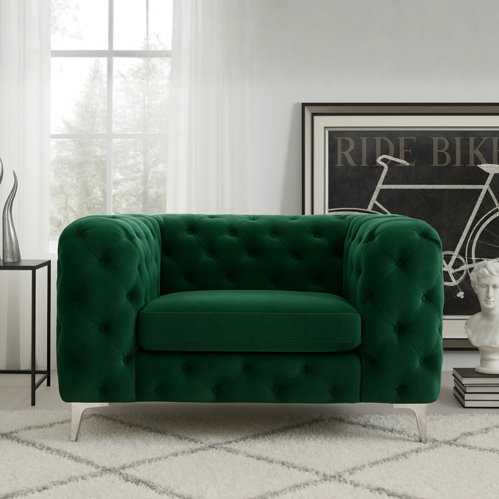 (Green, Armchair) Monaco Chesterfield Sofa Range 2 Seater, 3 Seater, 3+2 Seater, Corner Sofa and Footstool