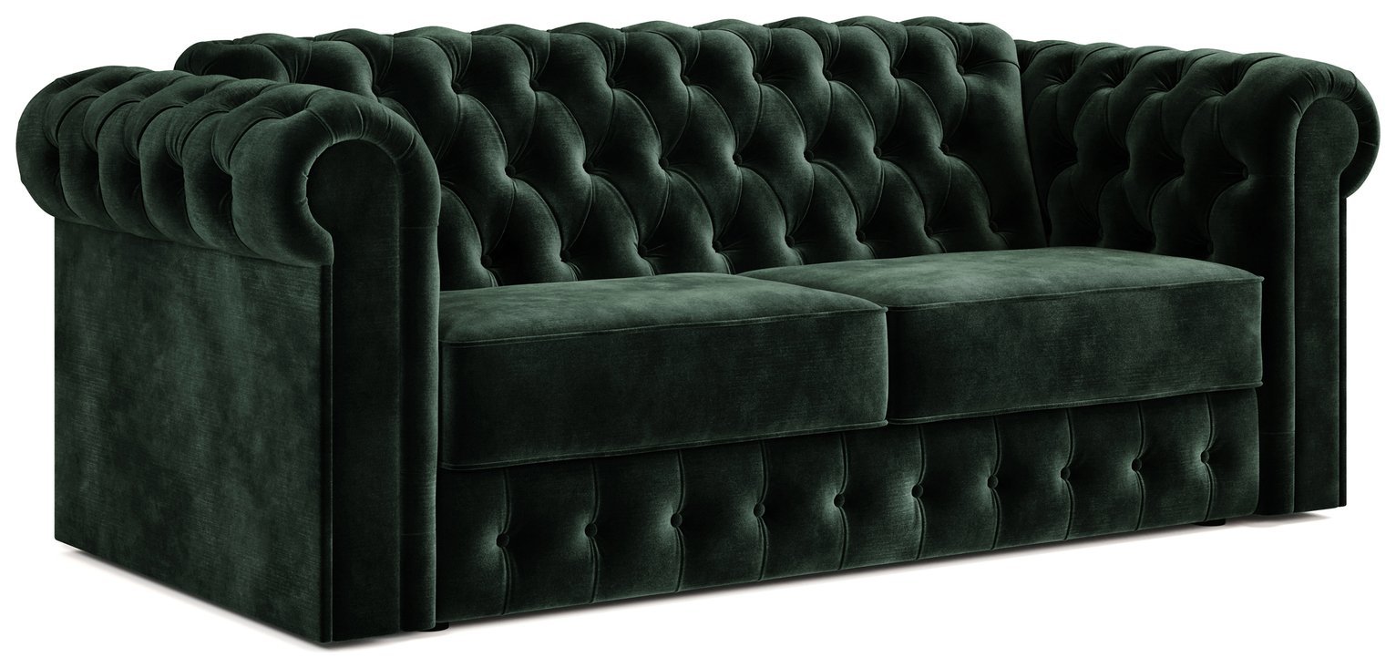 Jay-Be Chesterfield Velvet 3 Seater Sofa Bed - Dark Green