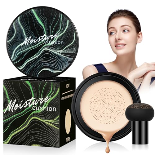 Mushroom Head Air Cushion CC Cream, Beauty Mushroom Air Cushion CC Cream, Cushion Foundation Concealer Make Up for Face Neck, BB Cream Moisturising Brightening Even Skin Tone (Ivory White)