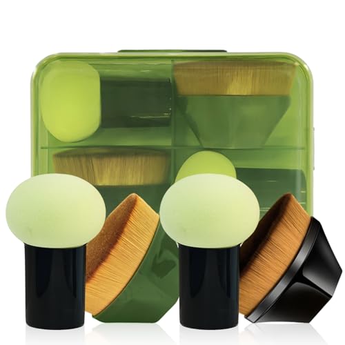 AmiCera Makeup Sponge, Beauty Blender 4 Pack Latex Free Beauty Makeup Powder Puff with Brush, Foundation Concealer for Liquid, Powders, Creams, with Beauty Blender Storage Case, Green