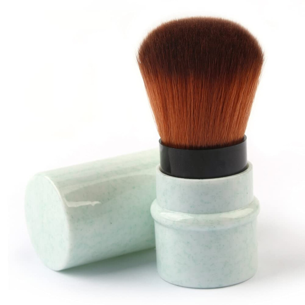RN BEAUTY Retractable Kabuki Brushes Powder Foundation Blush Concealer Makeup Brush Portable With Cover - Green