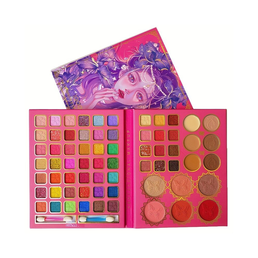 66 Colors Makeup Palette Eyeshadow Concealer Highlighter Blush Makeup Palette Pink Green Multicolor Creamy Texture Fashionable Facial Makeup Palette F