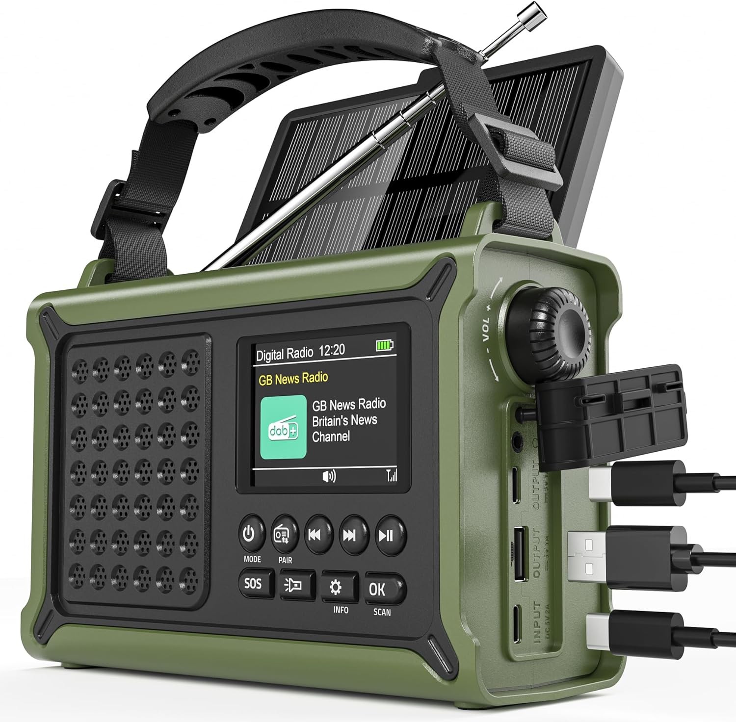 Solar DAB+ FM Radio Bluetooth 5.3 Rechargeable Emergency Hand Crank 4000Mah